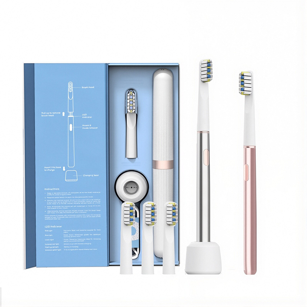 Premium Toothbrush Head: Equipped with a DuPont material brush head, it’s soft and comfortable, gentle on tooth enamel and gums, ensuring long-term brushing comfort. Extra brush heads are included for easy replacement and extended use.