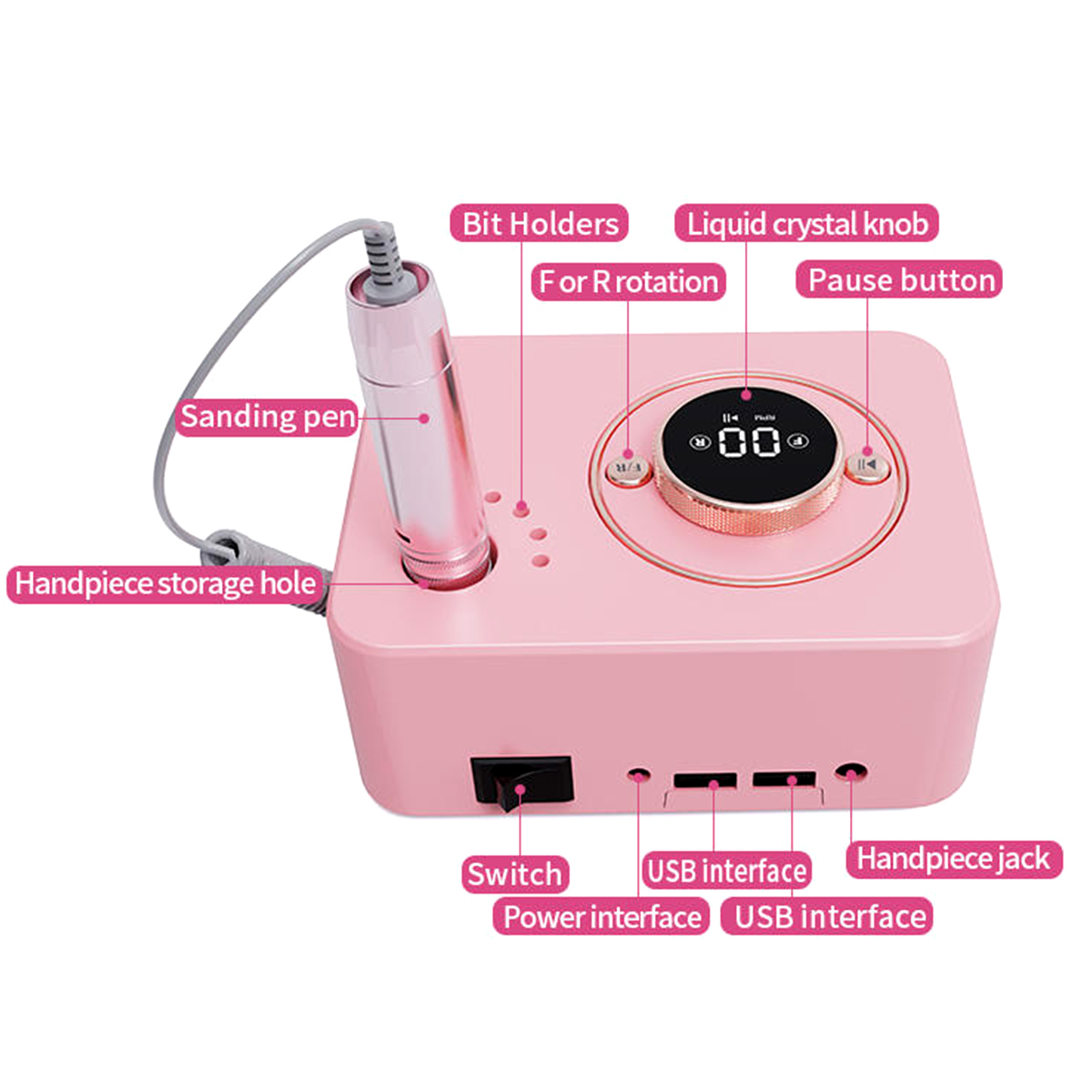 LCD Touchscreen Display: Clearly displays the current speed, gear position, and operating status. Intuitive and convenient operation allows you to monitor your manicure progress at all times, ensuring every treatment is precise and professional.
