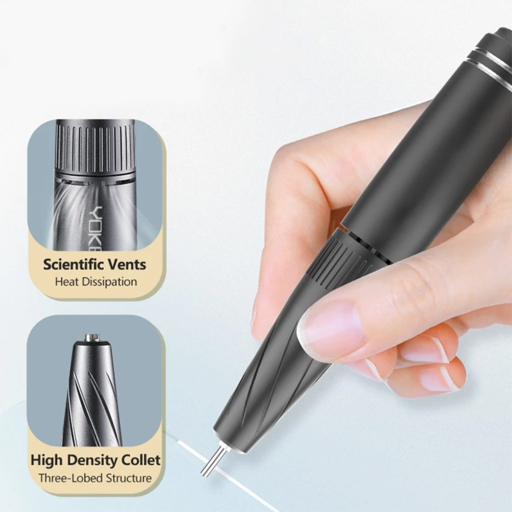 Professional Nail Care: The desktop design features a storage slot and six drill bit holders, enabling versatile manicure operations, including manicure, sanding, and polishing, suitable for home or professional salon use. High-Performance Power System: The high-density three-leaf chuck structure achieves a speed of up to 40,000 RPM. Adjustable speed allows…